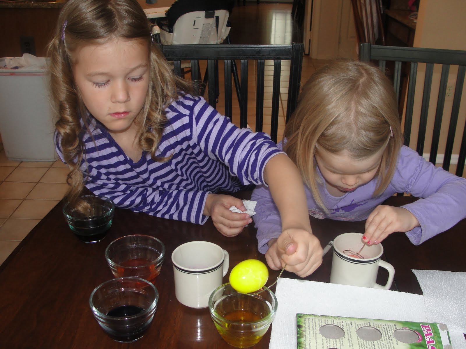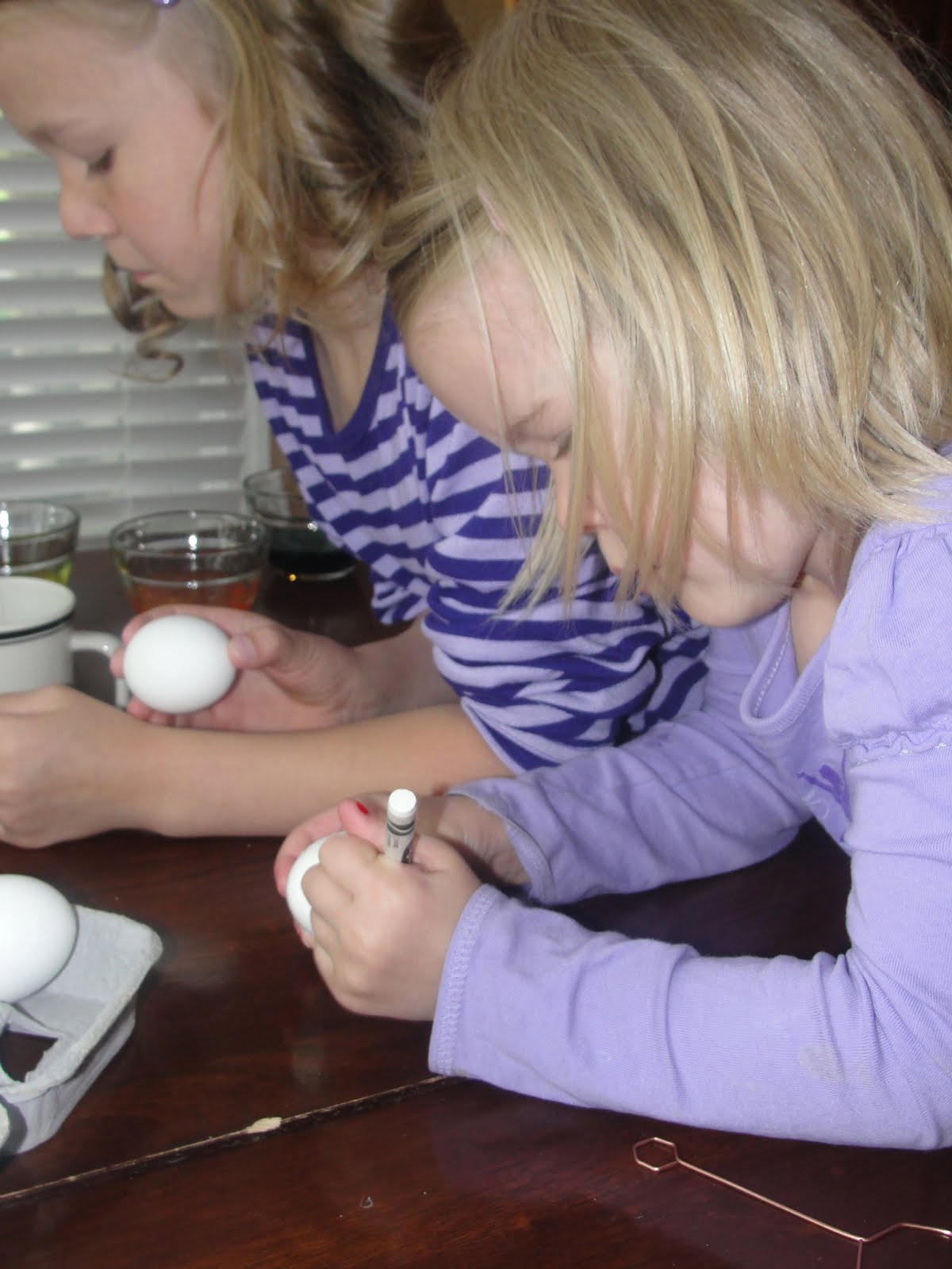 The girls personalizing their eggs: